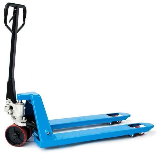Ideális a professzionális logisztikai segédeszköz üzletek, raktárak, üzemek alkalmazottai számára a rövidtávú kézi teherszállításhoz. Alkalmazhatóság: szabvány EUR raklapok szállítására. Túlterhelés elleni biztonsági szelep fokozza az áru és az üzemeltető biztonságát. Anyag: – Megbízható, erős, magas minőségű acélból készült termék Első kerék: – kormánykerék, belül vasmaggal Hátsó kerekek: – Tandem típusú (duplagörgős) rakomány görgők, belül vasmaggal. A duplagörgő küszöb esetén is lehetővé teszi az áruszállítást. Acél fogantyú: – 3 pozíciós működtető kar az emeléshez, szállításhoz, és a süllyesztéshez. A hidraulikus pumpa biztosítja a süllyesztési sebesség finomszabályzását és a túlterhelés elleni védelmet. Minden szükséges részén és a tengelyeken alaposan olajozott a könnyű manőverezésért és kormányzásért. A poliuretán bevonat a kerekeken kifejezetten alkalmasak akár kényes padlófelületeken történő alkalmazáshoz is. Csendes, strapabíró, nem hagy nyomot a járóburkolaton. Műszaki paraméterek: Teherbírás: 2,5 tonnaEmelési magasság: 200mmVillahossz: 1150mmSzélesség a villáknál :550mmVillák legalsó pozíciója: 85mmVillák legfelső pozíciója: 200mmVilla szélessége: 160mmRaklapemelő súlya: 65 kgKerekek: poliuretán